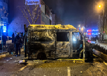 Two ambulances were stopped on Piroozi and Shahran streets in Tehran; after forcing the patients out, rioters set the vehicles on fire.