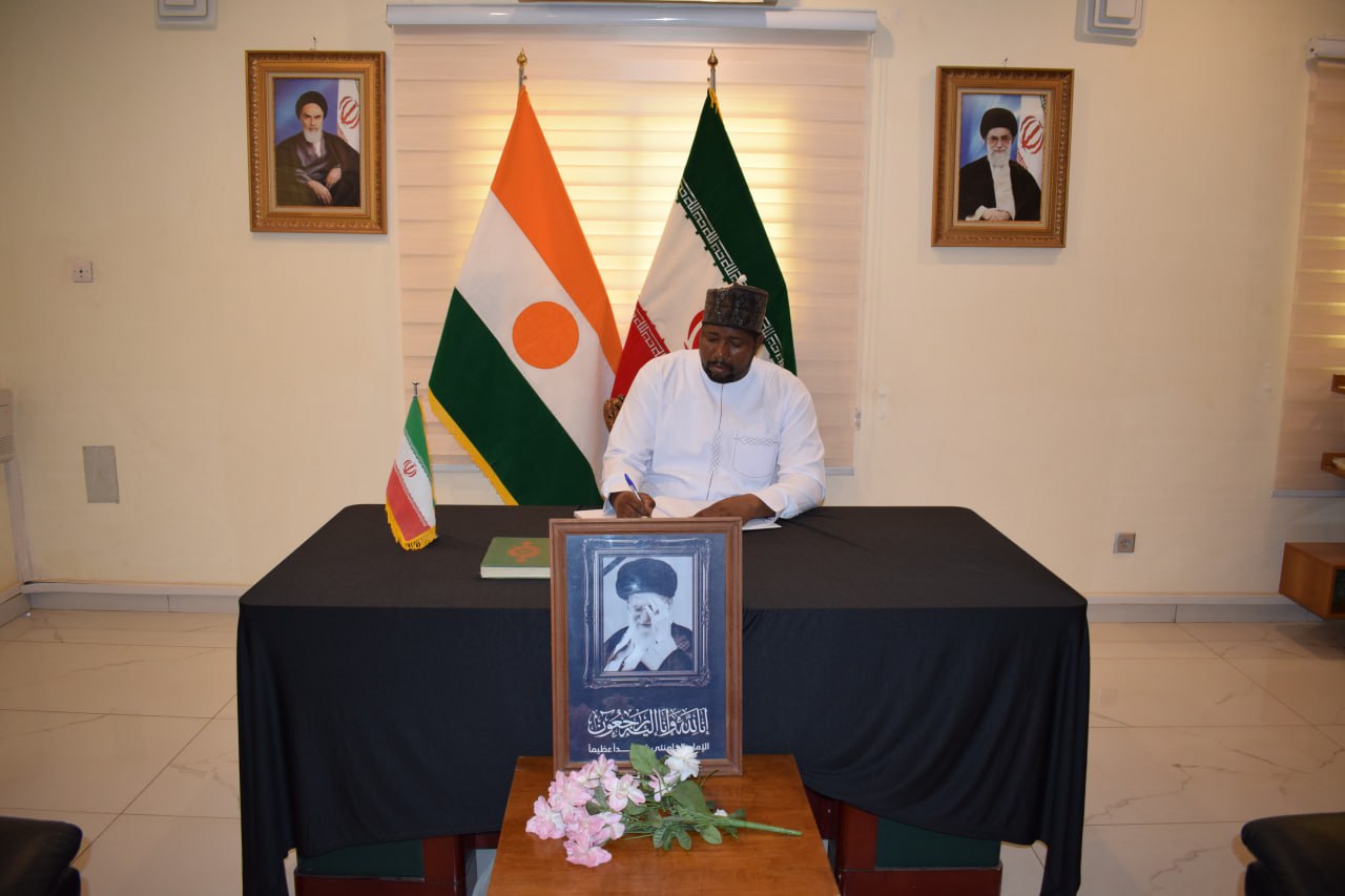 حضور وزیر تجارت و صنعت جمهوری نیجر در سفارت ایران برای عرض تسلیت شهادت رهبر شهید انقلاب