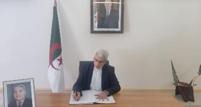 حضور سفیر کشورمان در سفارت الجزایر جهت امضای دفتر یادبود درگذشت رئیس جمهور اسبق این کشور