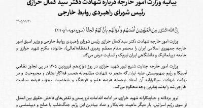 بیانیه وزارت امور خارجه درباره شهادت دکتر سید کمال خرازی رئیس شورای راهبردی روابط خارجی